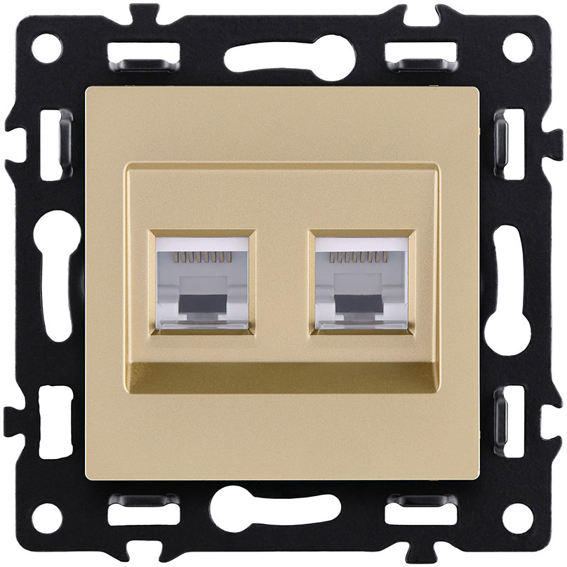 Розетка компьютерная 2 x RJ45 Cat.6 Asthetik, двойная, цвет - золотой