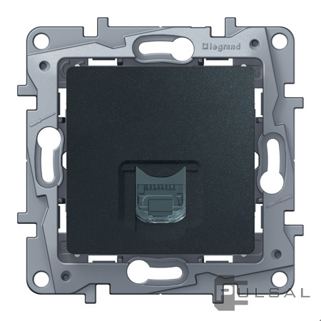 Etika, со шторками, с заземлением, одинарная, винтовые клеммы, цвет - антрацит
