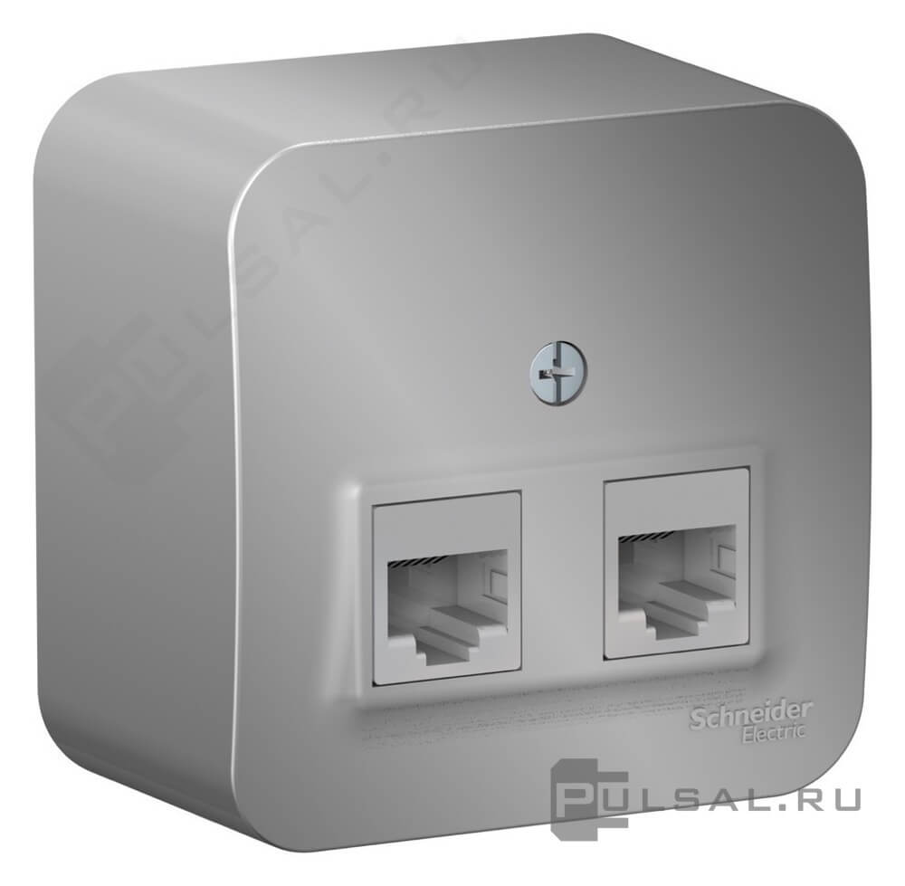 Розетка компьютерная RJ45, с изолирующей пластиной Blanca, двойная, цвет - алюминий