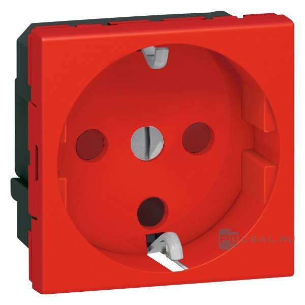 Розетка Mosaic, DLP, DLP floor, DLP IP 44, DLP IP 40, без шторок, с заземлением, одинарная, винтовые клеммы, цвет - красный