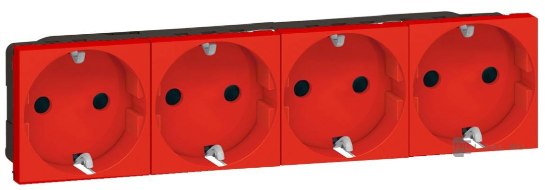 Mosaic, DLP, DLP floor, DLP IP 44, DLP IP 40, без шторок, с заземлением, одинарная, безвинтовые клеммы, цвет - красный