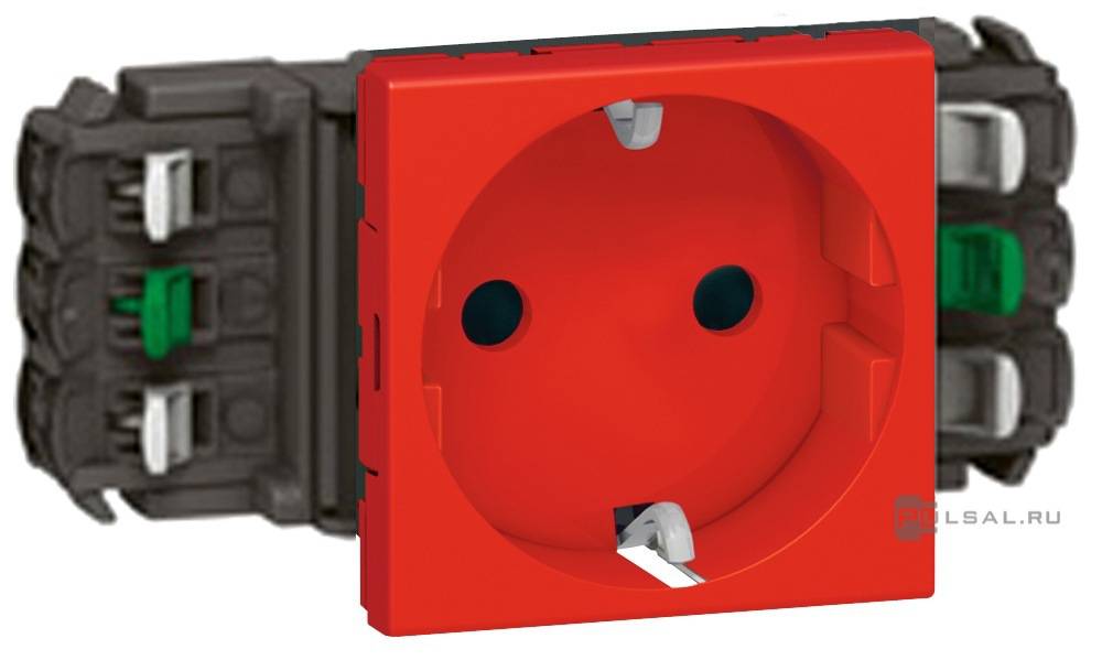 Mosaic, DLP, DLP floor, DLP IP 44, DLP IP 40, без шторок, с заземлением, одинарная, безвинтовые клеммы, цвет - красный
