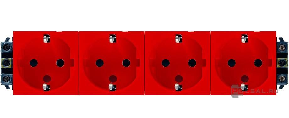 Mosaic, DLP, DLP floor, DLP IP 44, DLP IP 40, без шторок, с заземлением, одинарная, безвинтовые клеммы, цвет - красный