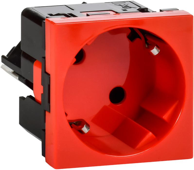 Розетка Mosaic, DLP, DLP floor, DLP IP 44, DLP IP 40, со шторками, с заземлением, одинарная, безвинтовые клеммы, цвет - красный