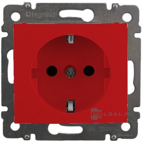Розетка Valena, без шторок, с заземлением, одинарная, винтовые клеммы, цвет - красный