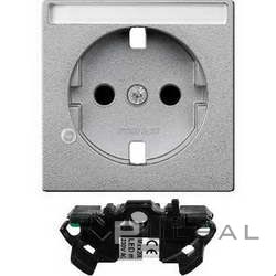 Накладка с модулем индикаторной лампы M-Plan, M-Elegance, M-Pure, M-Pure Decor, со шторками, с заземлением, одинарная, винтовые клеммы, безвинтовые клеммы, цвет - алюминий
