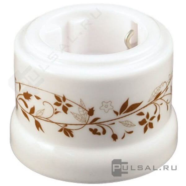 Розетка Лизетта Декор, без шторок, с заземлением, одинарная, винтовые клеммы, цвет - белый - декор d6/2
