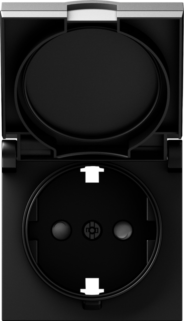 Накладка электрической розетки A07 NATURAL, A07, A07 WAVE, A07 NATURAL ROUND, со шторками, с крышкой, с заземлением, одинарная, цвет - карбон матовый