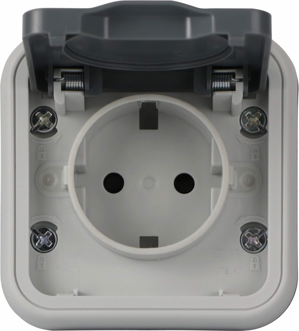 Блок розетки с выключателем / переключателем W55, со шторками, с крышкой, с заземлением, одинарная, винтовые клеммы, цвет - серый