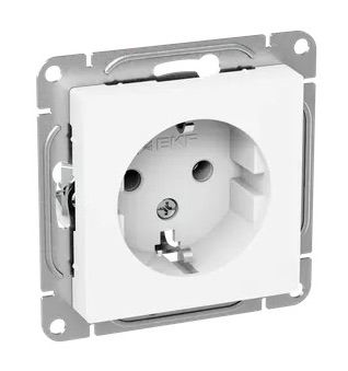 Розетка Epica, без шторок, с заземлением, одинарная, винтовые клеммы, цвет - белый
