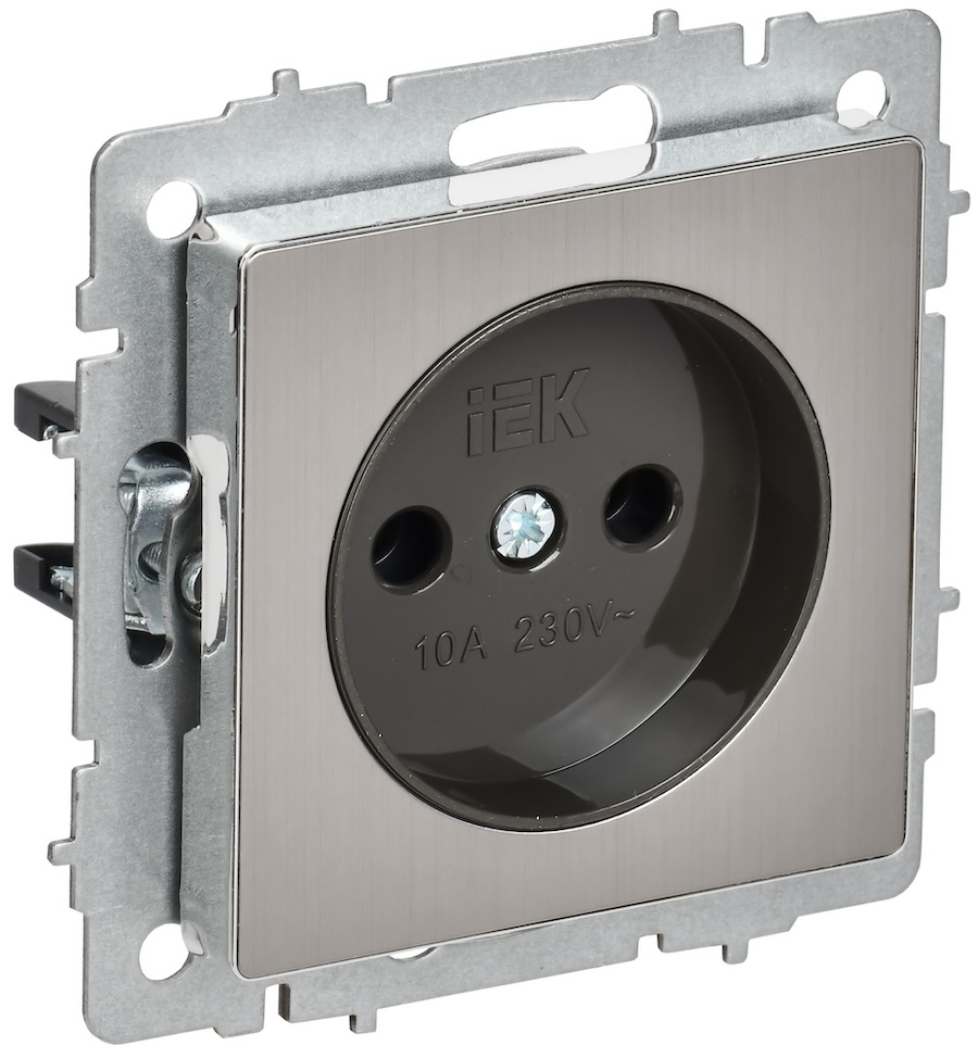 Розетка с рамкой BRITE, без шторок, без заземления, одинарная, винтовые клеммы, цвет - никель