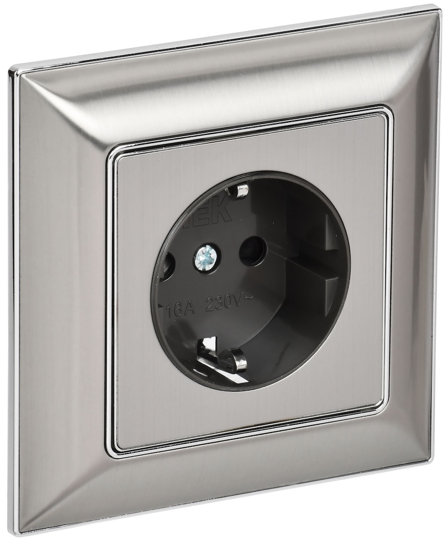BRITE, без шторок, с заземлением, одинарная, винтовые клеммы, цвет - никель
