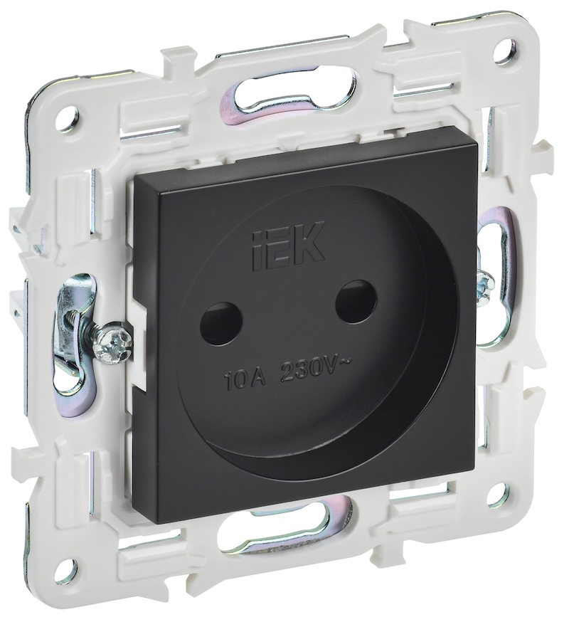 Розетка Skandy, со шторками, без заземления, одинарная, винтовые клеммы, цвет - черный