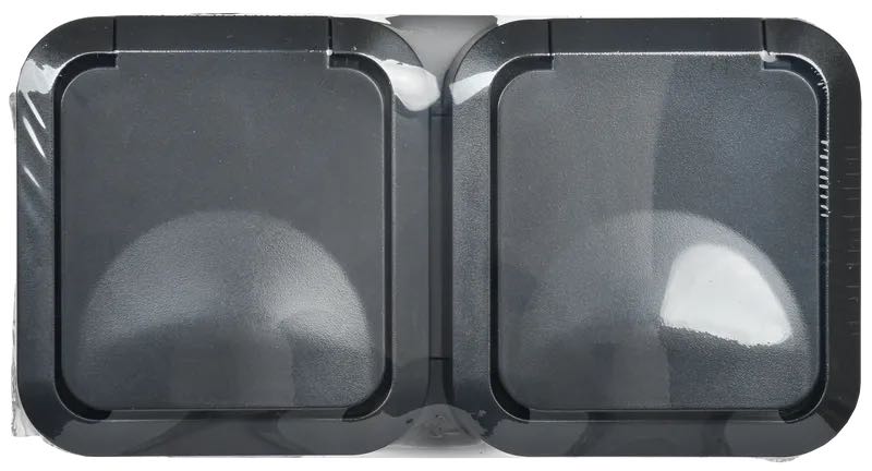 Розетка (вертикальный блок) TORS, со шторками, с крышкой, с заземлением, двойная, безвинтовые клеммы, цвет - графит