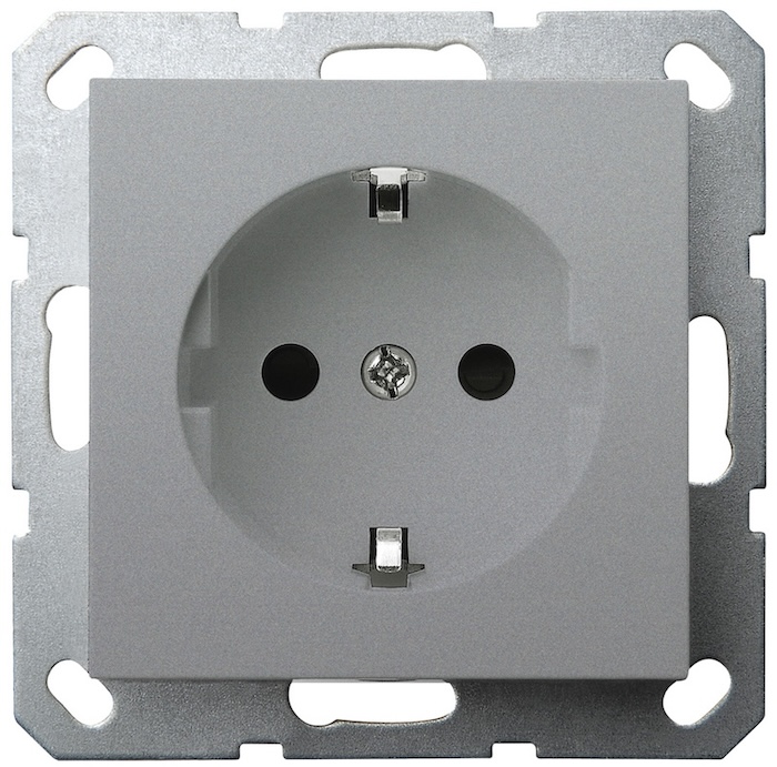 Розетка G series, со шторками, с крышкой, с заземлением, одинарная, цвет - алюминий