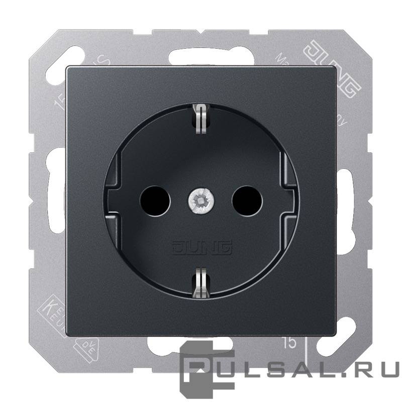 Розетка A VIVA, A creation, A 550, A flow, AS 500, без шторок, с заземлением, одинарная, винтовые клеммы, цвет - антрацит матовый