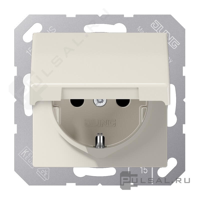 Розетка AS 500 Ударопрочная, со шторками, с крышкой, с заземлением, одинарная, безвинтовые клеммы, цвет - слоновая кость