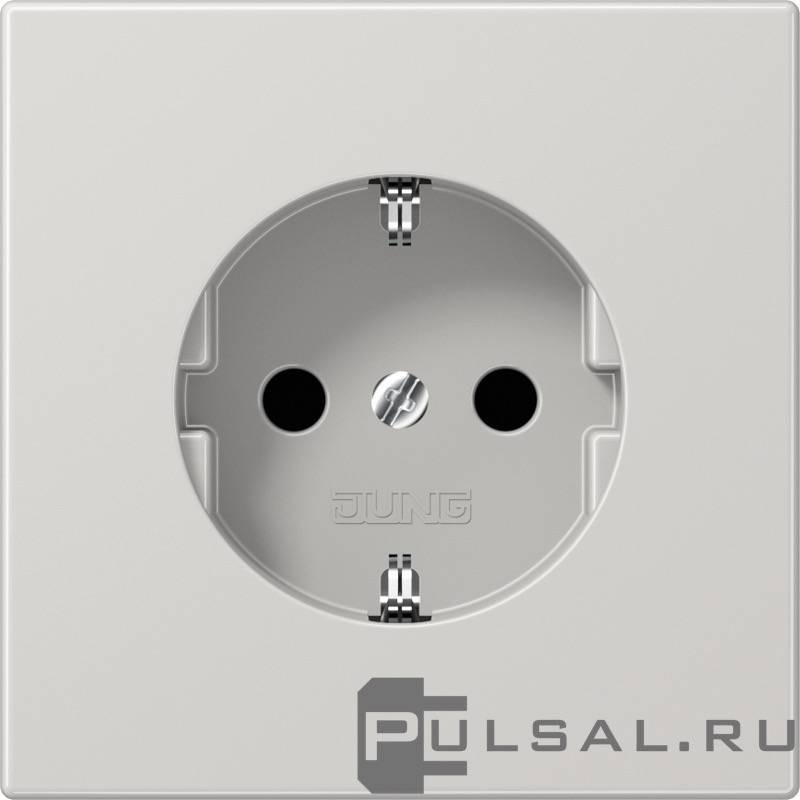 Розетка LS 990, LS-design, FD-design, без шторок, с заземлением, одинарная, безвинтовые клеммы, цвет - светло-серый