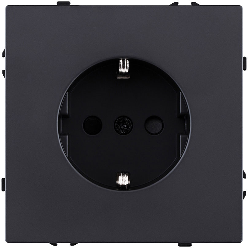 Розетка электрическая Eclipse, с заземлением, одинарная, винтовые клеммы, цвет - черный матовый