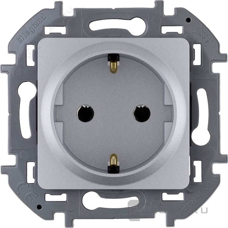 Розетка Inspiria, без шторок, с заземлением, одинарная, винтовые клеммы, цвет - алюминий