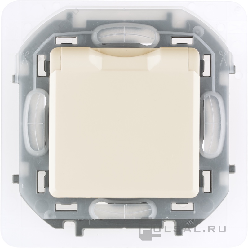 Розетка Inspiria, со шторками, с крышкой, с заземлением, одинарная, винтовые клеммы, цвет - слоновая кость