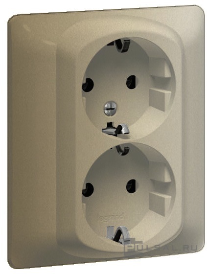 Розетка Galea Life, со шторками, с заземлением, двойная, винтовые клеммы, цвет - титан