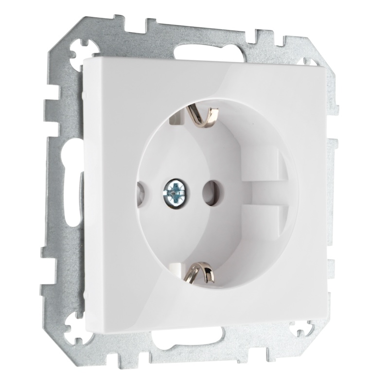 Розетка Epsilon, Retro Liregus, со шторками, с заземлением, одинарная, безвинтовые клеммы, цвет - белый