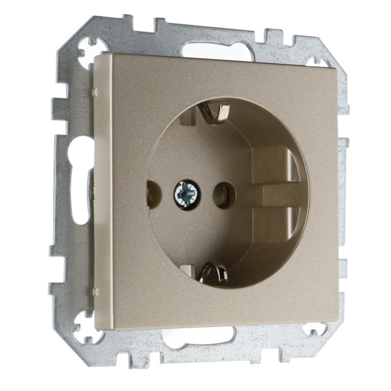 Розетка Epsilon, Retro Liregus, со шторками, с крышкой, с заземлением, одинарная, безвинтовые клеммы, цвет - шампань