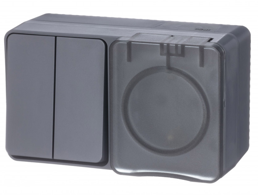 Блок, розетка + выключатель Atlas Design Profi 54, со шторками, с крышкой, с заземлением, одинарная, винтовые клеммы, цвет - антрацит