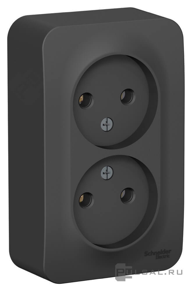Розетка с рамкой Blanca, без шторок, с заземлением, двойная, цвет - антрацит