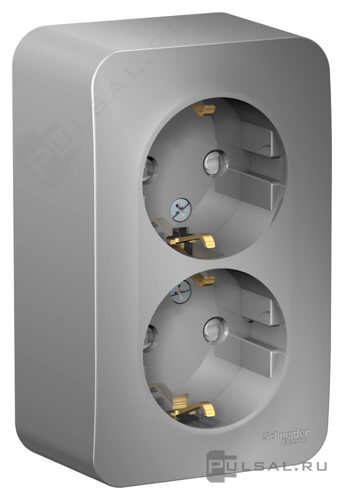 Розетка с изолирующей пластиной Blanca, со шторками, с заземлением, двойная, цвет - алюминий