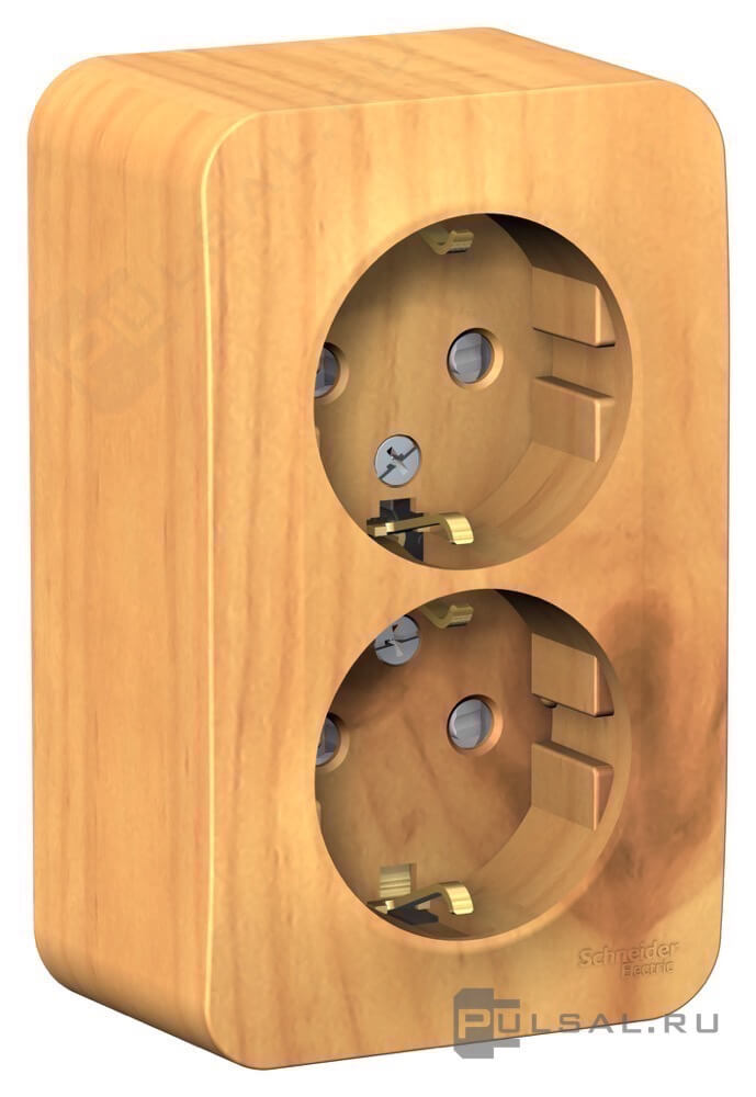 Розетка с изолирующей пластиной Blanca, без шторок, с заземлением, двойная, цвет - ясень
