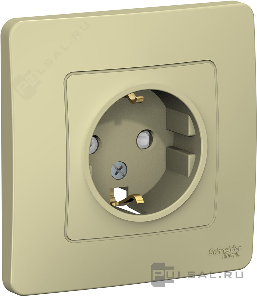Розетка с рамкой Blanca, со шторками, с заземлением, одинарная, цвет - бежевый