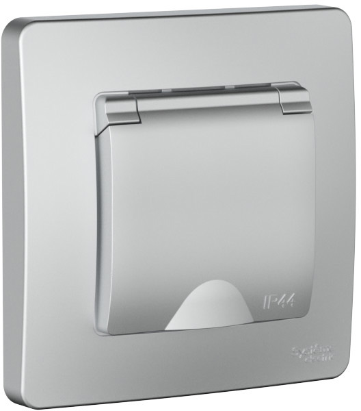 Розетка с рамкой 16A Blanca, со шторками, с крышкой, с заземлением, одинарная, винтовые клеммы, цвет - алюминий