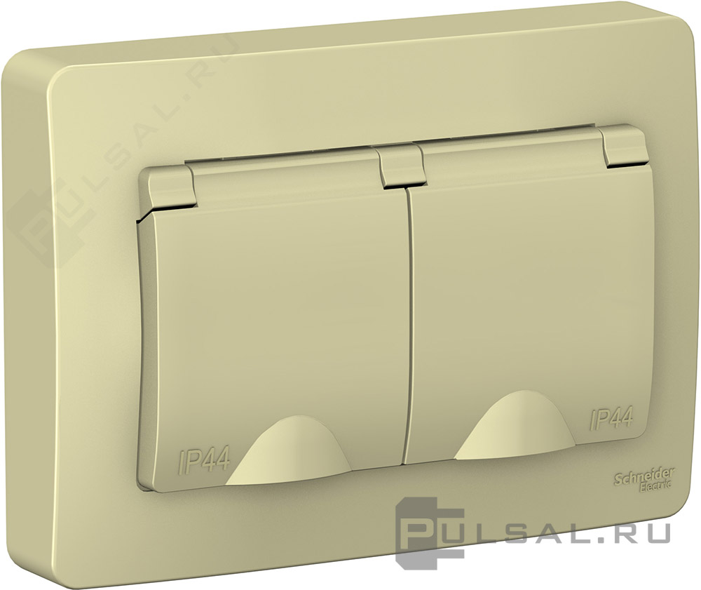Розетка в одну монтажную коробку Blanca, со шторками, с крышкой, с заземлением, двойная, цвет - бежевый