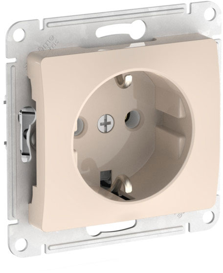 Розетка (безвинтовые клеммы) Glossa, без шторок, с заземлением, одинарная, безвинтовые клеммы, цвет - бежевый