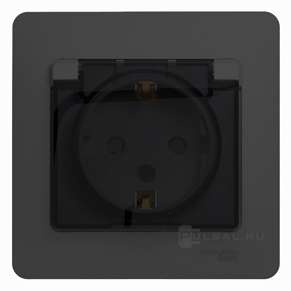 Розетка с рамкой Glossa, со шторками, с крышкой, с заземлением, одинарная, винтовые клеммы, цвет - антрацит