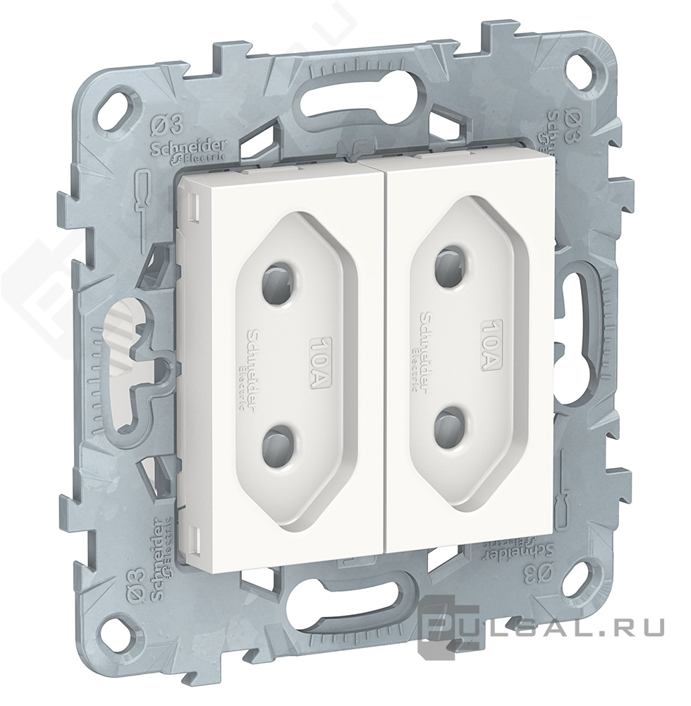 Розетка моноблок Unica New Studio, со шторками, с заземлением, двойная, винтовые клеммы, цвет - белый