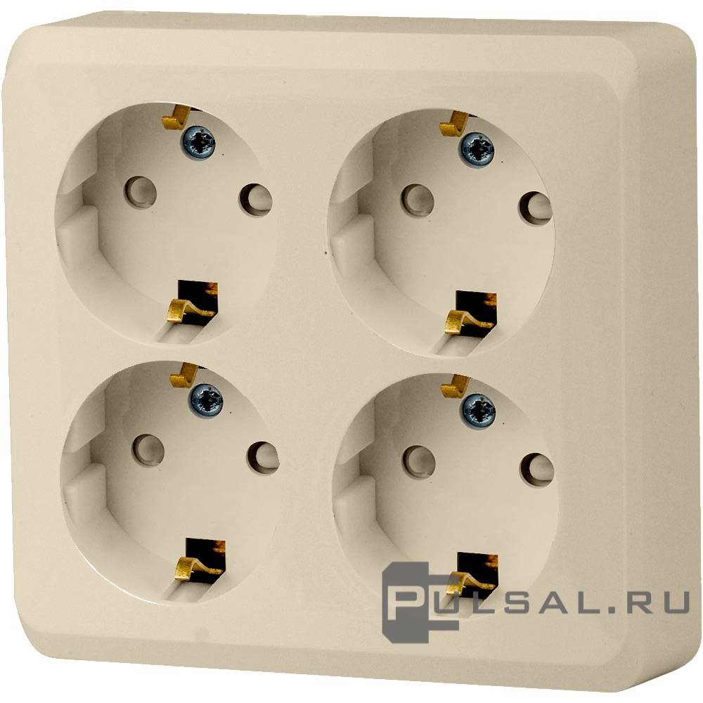 Розетка Этюд, без шторок, без заземления, четверная, винтовые клеммы, цвет - кремовый