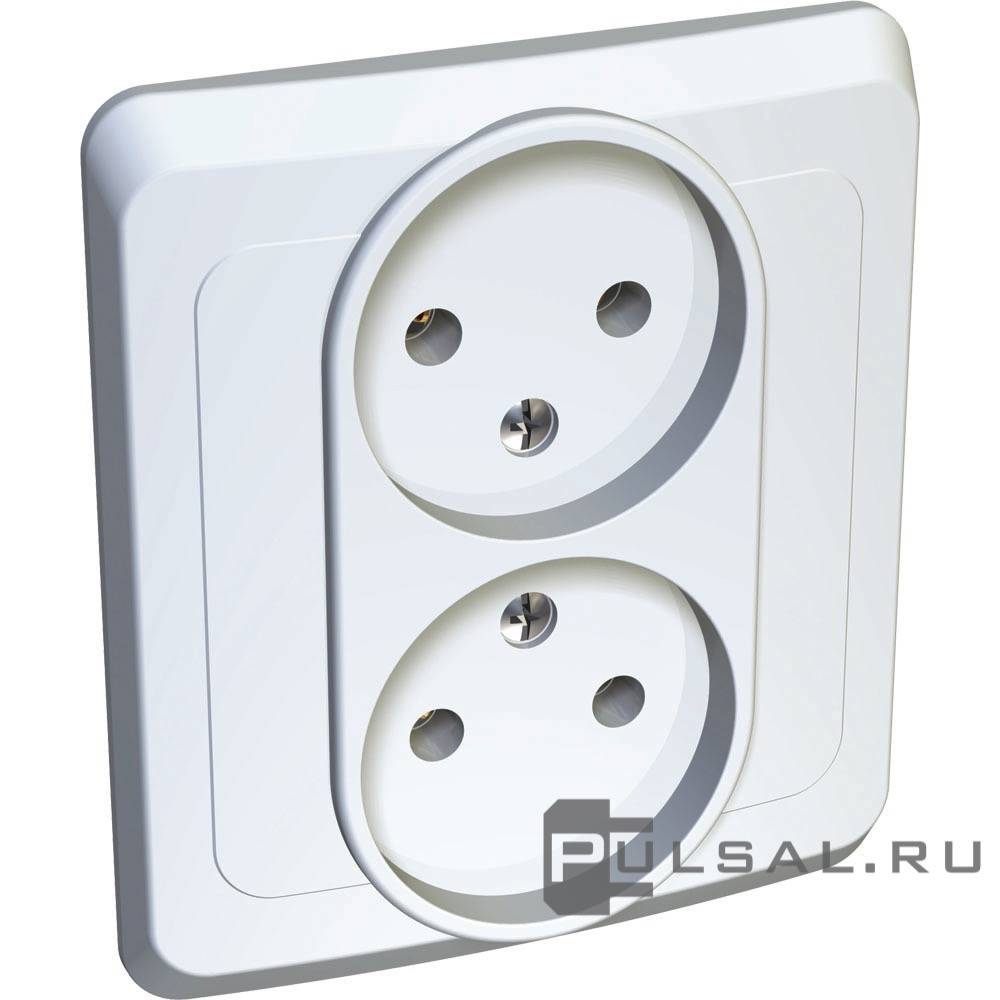 Розетка Этюд, со шторками, без заземления, двойная, винтовые клеммы, цвет - белый