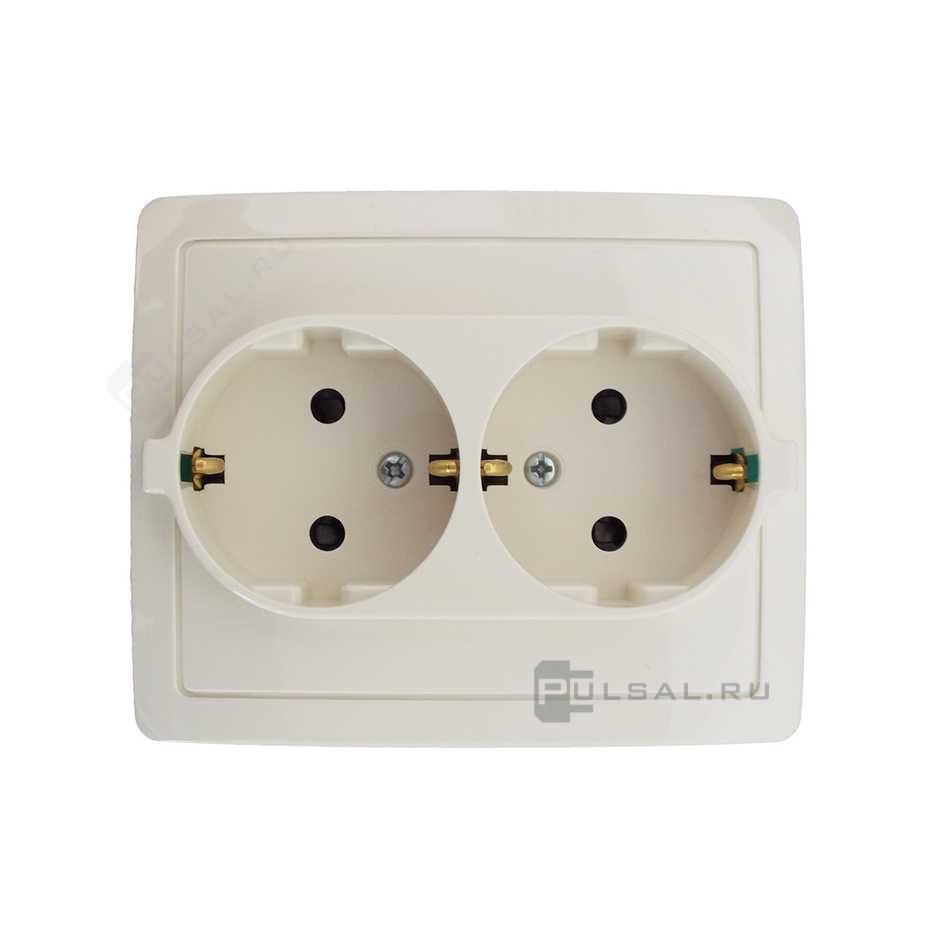 Розетка моноблок Simon 15, со шторками, с заземлением, двойная, винтовые клеммы, цвет - слоновая кость