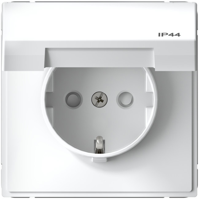 Розетка ArtGallery Aqua ArtGallery, ArtGallery Pure, со шторками, с крышкой, с заземлением, одинарная, винтовые клеммы, цвет - белый