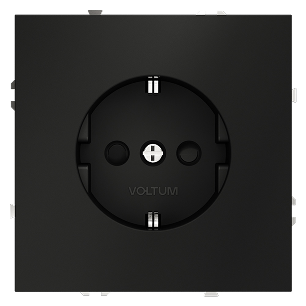 Розетка S70, со шторками, с заземлением, одинарная, безвинтовые клеммы, цвет - черный матовый