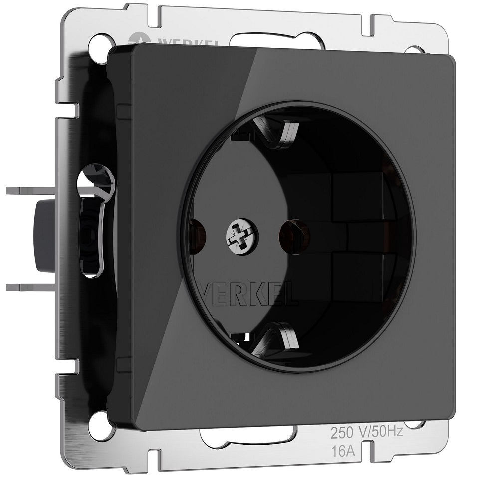 Розетка Alumax, Split, Slab, Senso, Baguette, Acrylic, Platinum, Elite, Snabb, Stream, Flock, Stark, Fiore, Favorit, Diamant, Aluminium, Antik, Metallic, со шторками, с крышкой, с заземлением, одинарная, винтовые клеммы, цвет - черный акрил