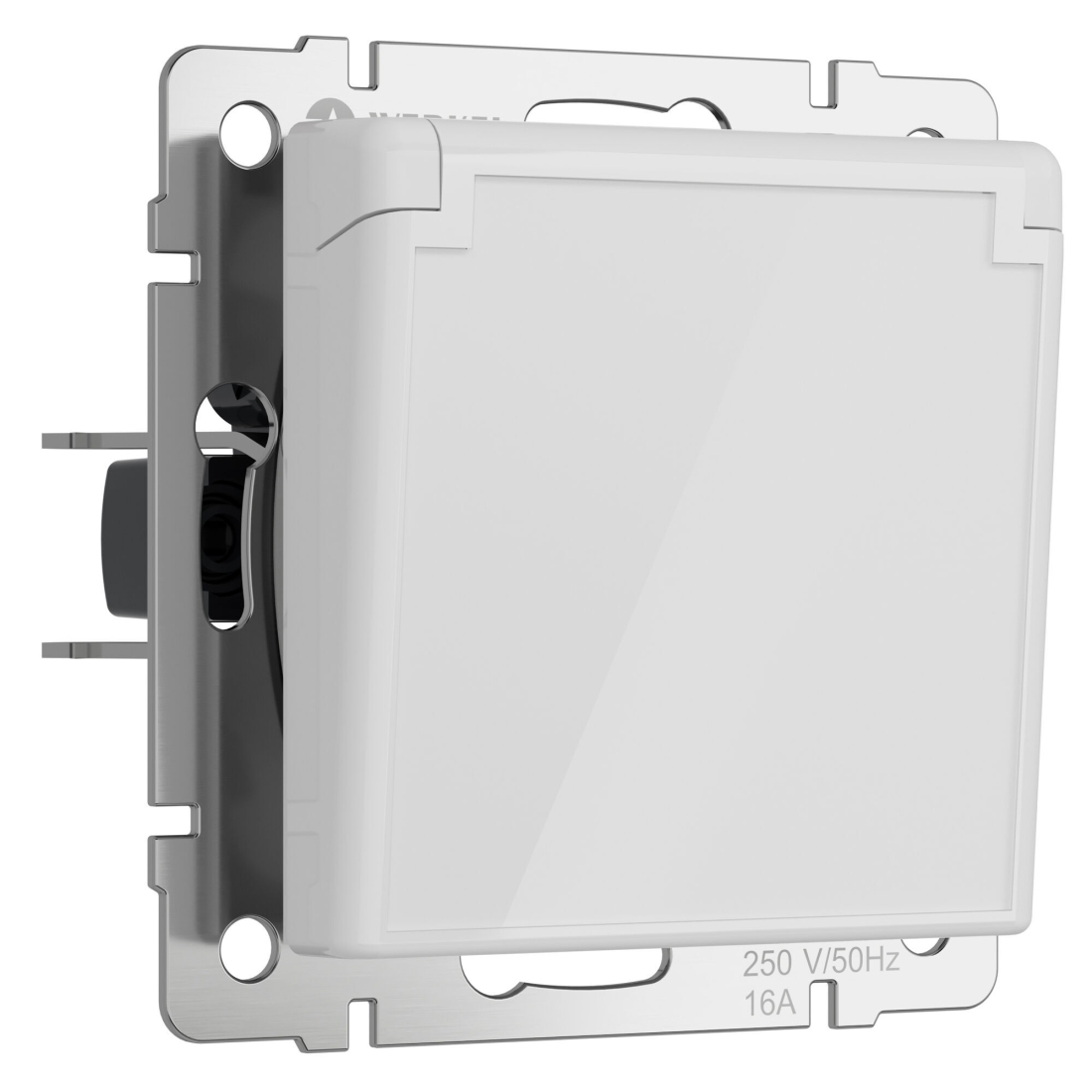 Розетка Alumax, Split, Slab, Senso, Baguette, Acrylic, Platinum, Elite, Snabb, Stream, Flock, Stark, Fiore, Favorit, Diamant, Aluminium, Antik, Metallic, со шторками, с крышкой, с заземлением, одинарная, винтовые клеммы, цвет - белый акрил