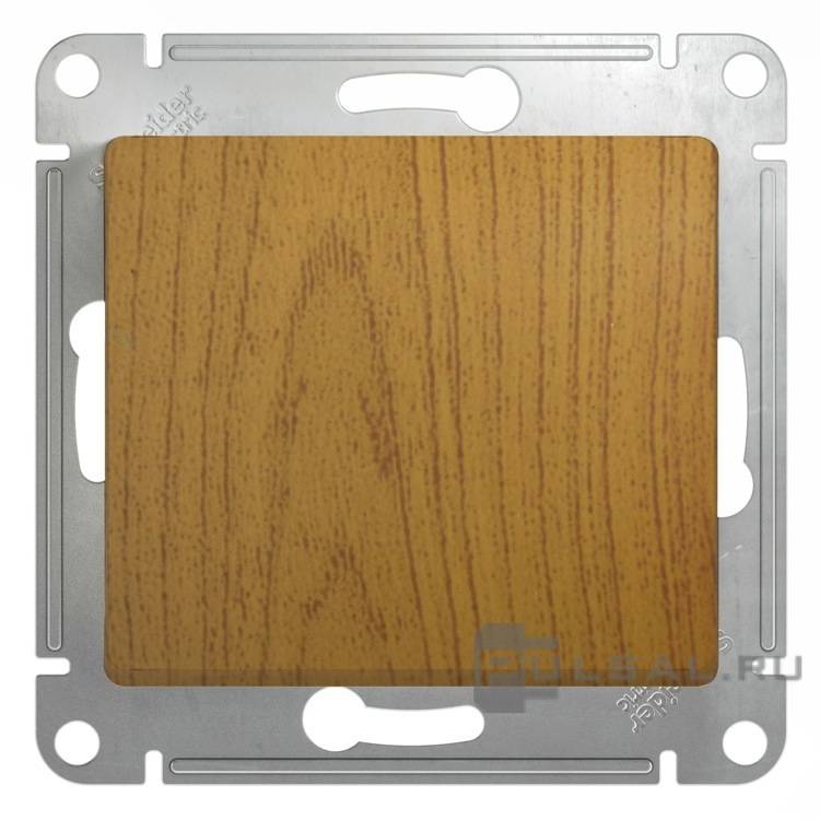 Выключатель с рамкой Glossa, одноклавишный, без подсветки, цвет - дуб