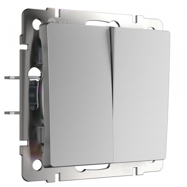 Кнопка Н.О.+Н.О. Alumax, Split, Slab, Senso, Baguette, Acrylic, Platinum, Elite, Snabb, Stream, Flock, Stark, Fiore, Favorit, Diamant, Aluminium, Antik, Metallic, двухклавишный, цвет - серебряный