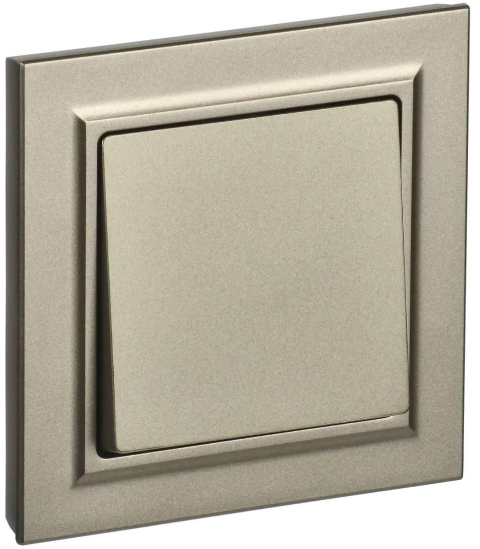 Выключатель с рамкой BRITE, одноклавишный, без подсветки, цвет - шампань