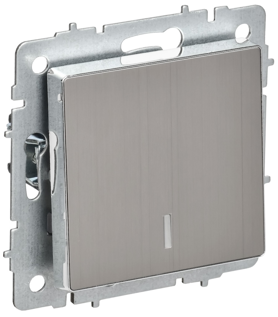 Выключатель с рамкой BRITE, одноклавишный, без подсветки, цвет - никель