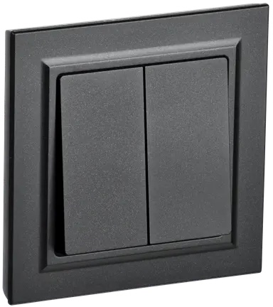 Выключатель с рамкой BRITE, двухклавишный, без подсветки, цвет - черный